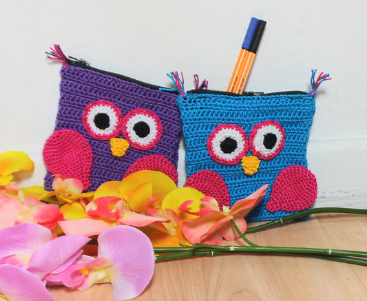 Kleine Kosmetiktasche-Etui Eule Häkelanleitung