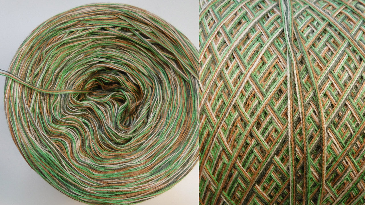 Jeder Bobbel ist 4-fädrig, 50% Baumwolle und 50% Polyacryl, bei 30° in der Waschmaschine waschbar, nicht für den Trockner geeignet.