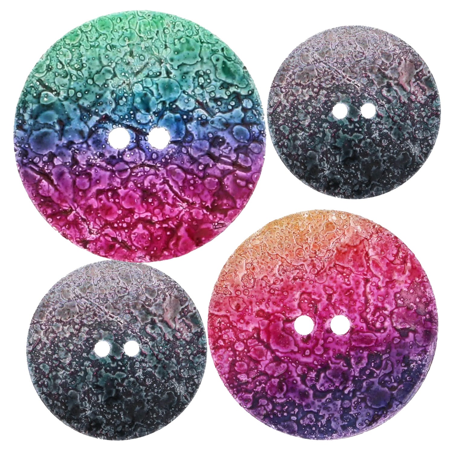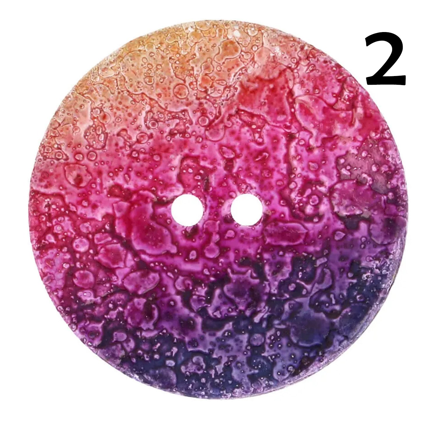 Diese wunderschönen Knöpfe sind aus dem natürlichen Material der Kokosnussschale hergestellt und auf der Vorderseite meliert lackiert.