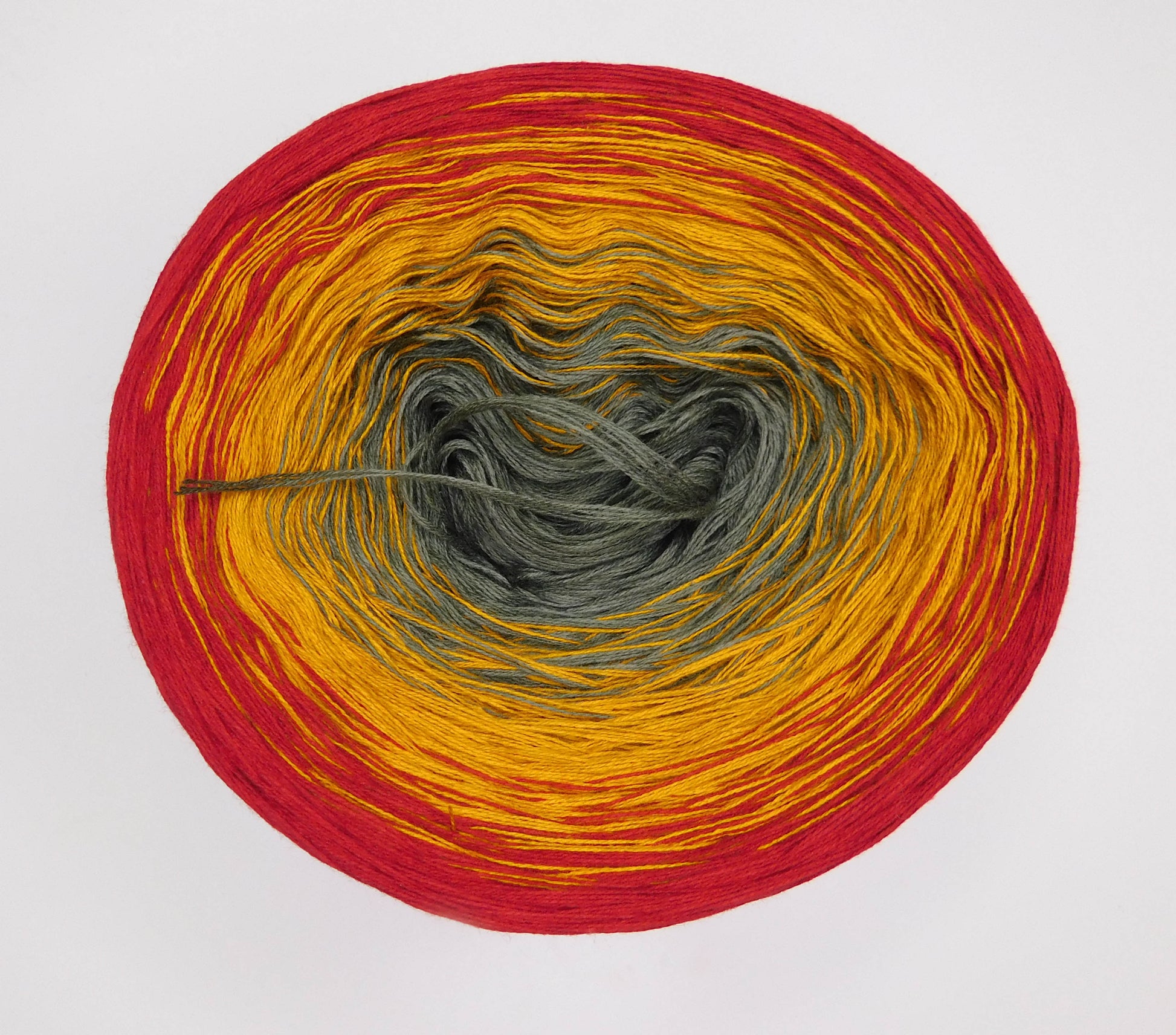 Jeder Bobbel ist 4-fädrig, 50% Baumwolle und 50% Polyacryl, bei 30° in der Waschmaschine waschbar, nicht für den Trockner geeignet.