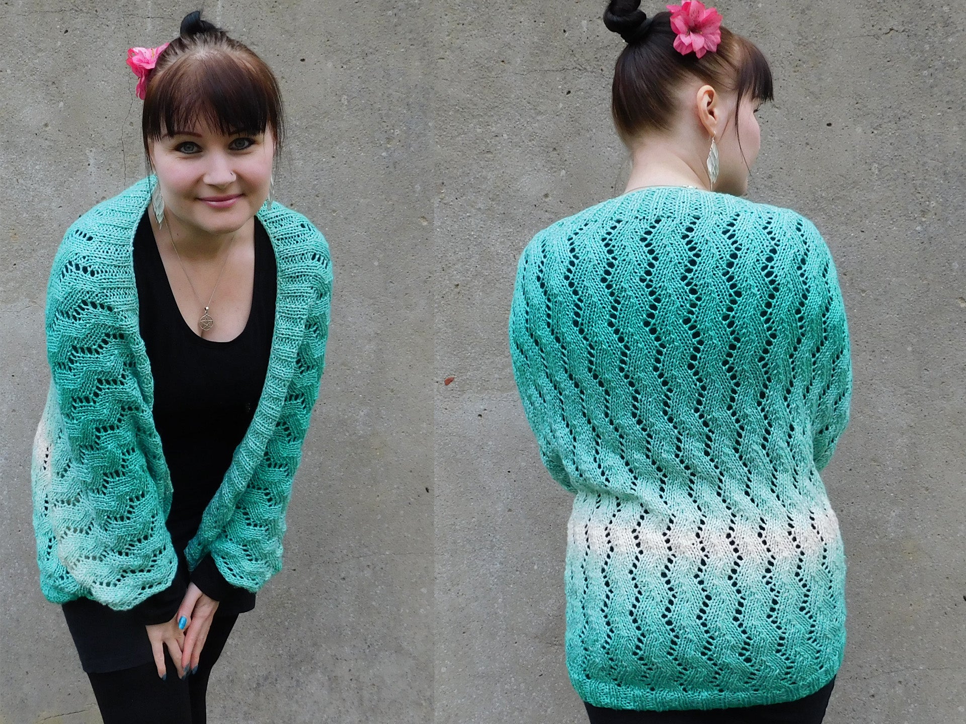 Ich habe für Gr. 36/38 3 Knäule "Sky" von Woolly Hugs verwendet (Farbnr. 63; für jede weitere Doppelgröße solltest du 1 weiteres Knäuel einkalkulieren; 1 Knäuel = 100g/250m), Rundstricknadel 6,0, Schere, Wollnadel, ggf. Stecknadeln, und im Fall von Ärmeln ein Nadelspiel 6,0