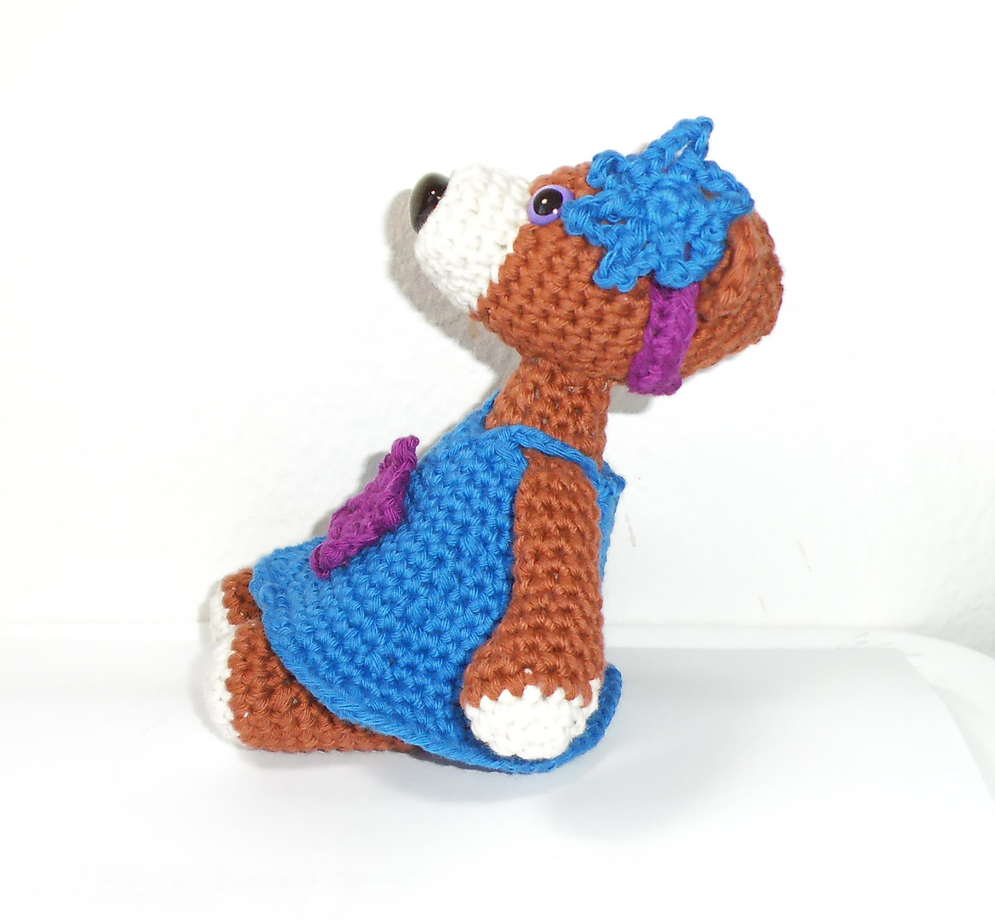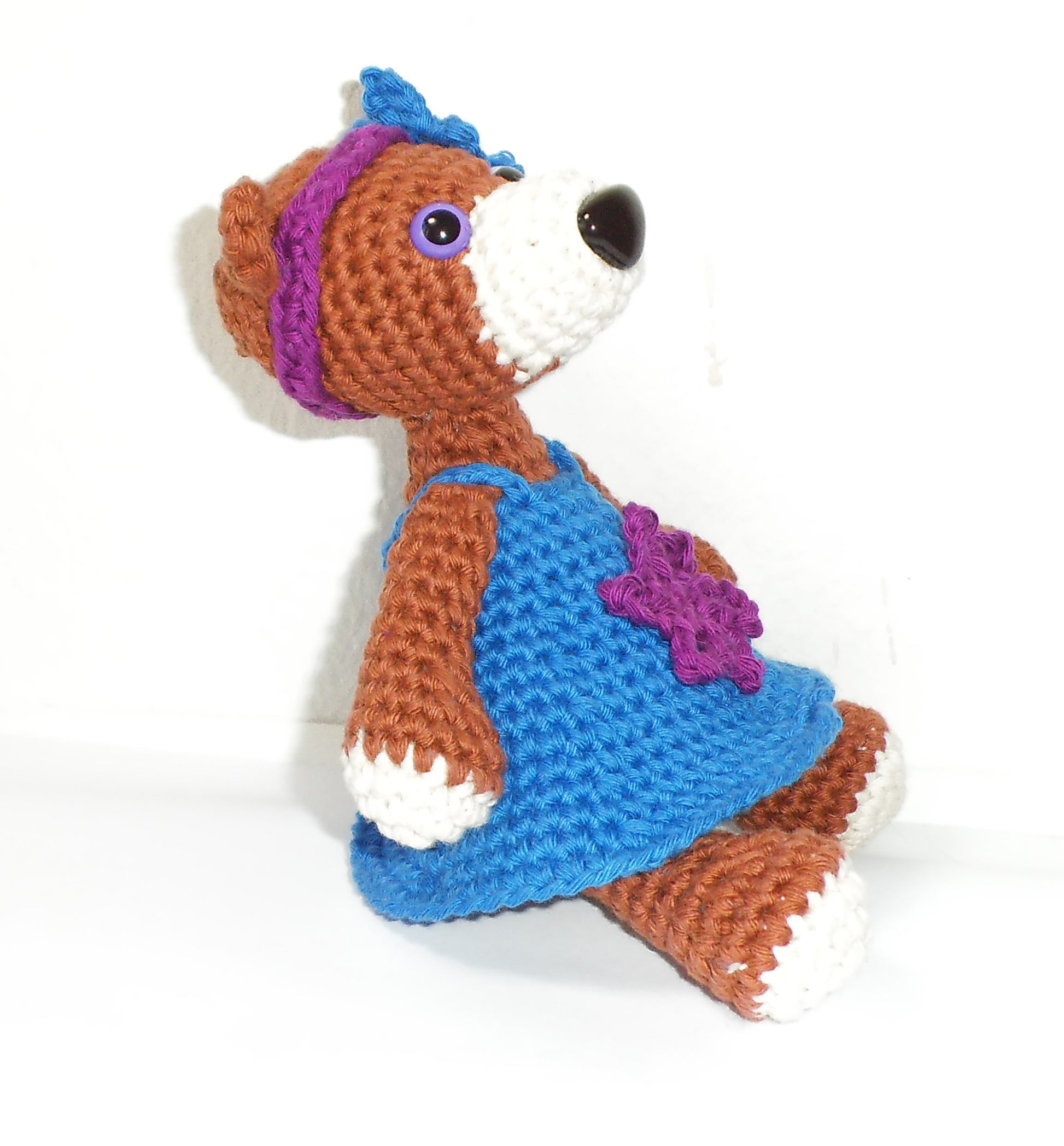 Berta ist ca. 18,5/19cm groß (bei Verwendung des Originalgarns und Nadelstärke 3,0; ansonsten kann es leichte Abweichungen geben).