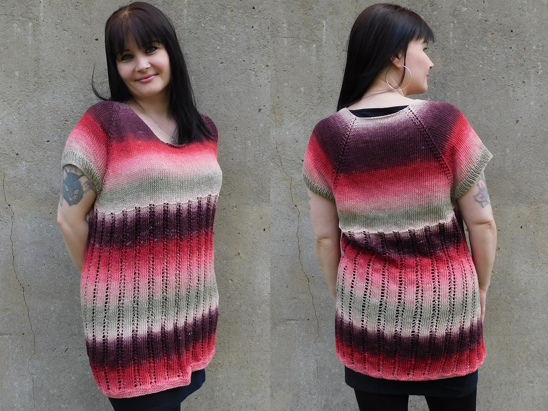 Mit dieser Anleitung erkläre ich dir Schritt für Schritt, wie du diese RVO Tunika (in jeder Größe) stricken kannst.